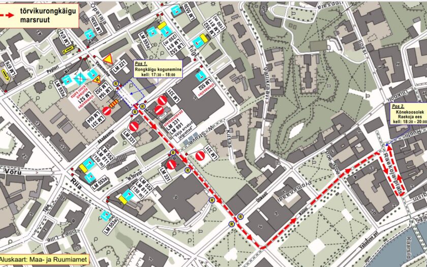 В понедельник, 2 февраля, в связи с проведением шествия будет закрыто движение на улице Ванемуйзе (на участке от дома Vanemuise 35 до улицы Ülikooli). Движение будет перекрыто с 17:30 до 18:15. На перекрёстке улиц Пеплери …