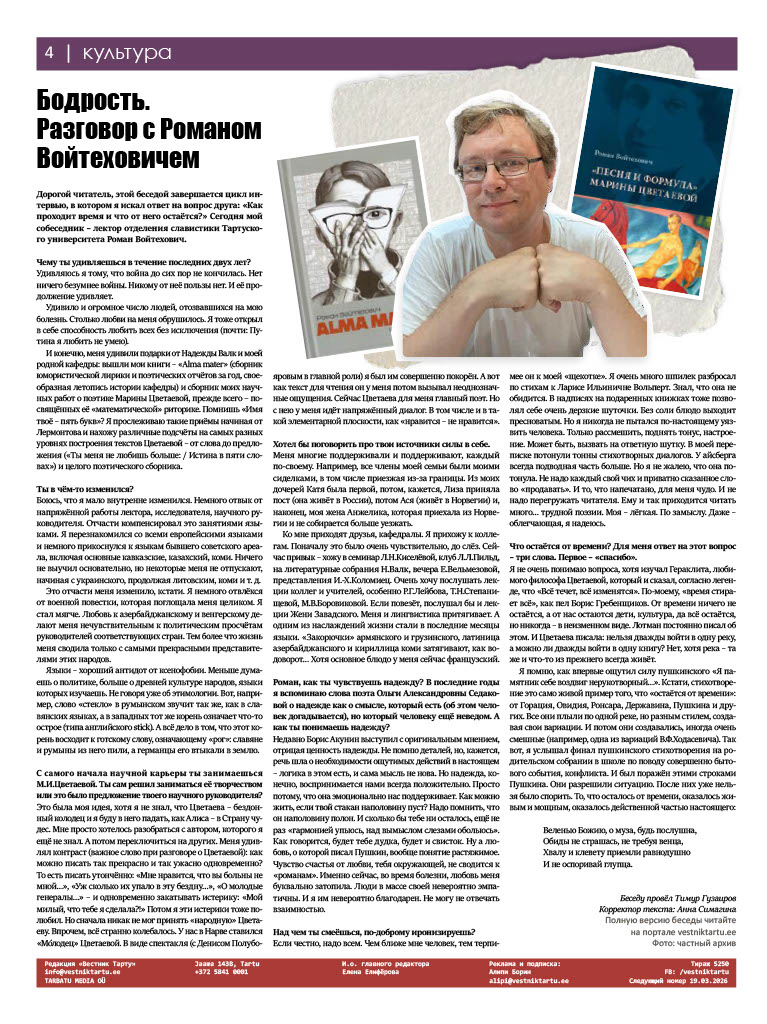 Анонс свежего номера газеты «Вестник Тарту» (№226, 05.03.2026)