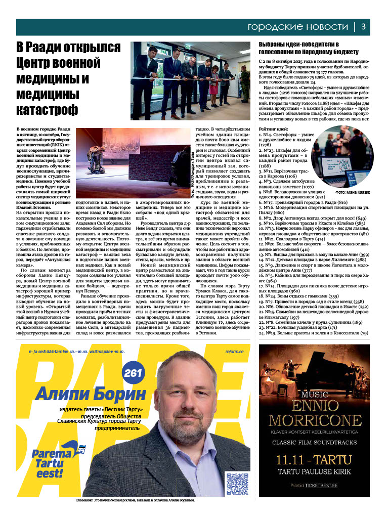 Анонс свежего номера газеты «Вестник Тарту» (№216, 16.10.2025)