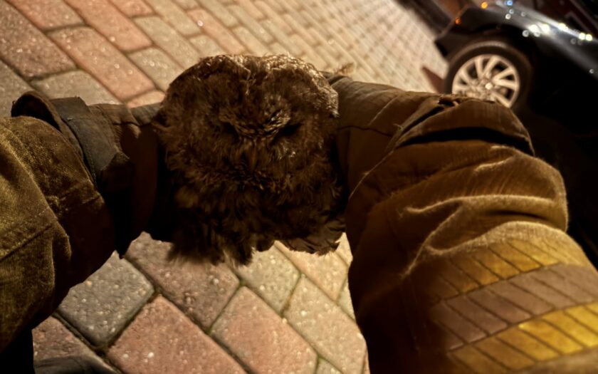 В 21:27 спасателей вызвали на улицу Пухкекоду в Тарту, где крупная птица упала в дымоход. Спасатели сняли часть трубы между дымоходом и котлом, достали сову, очистили её от сажи и выпустили на свободу в ближайшем парке.