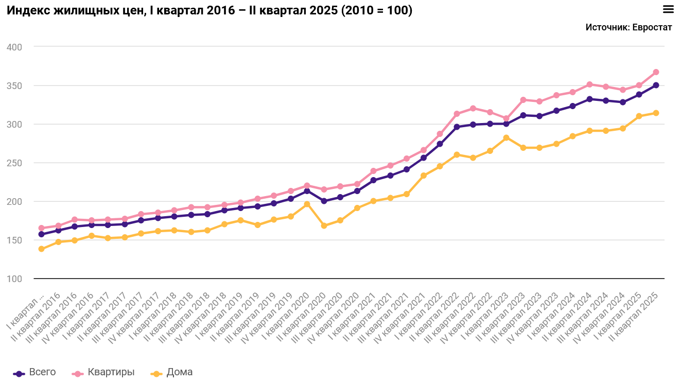 Во втором квартале цены на квартиры поднялись по сравнению с тем же периодом 2024 года на 4,5%, цены на дома — на 7,8%.