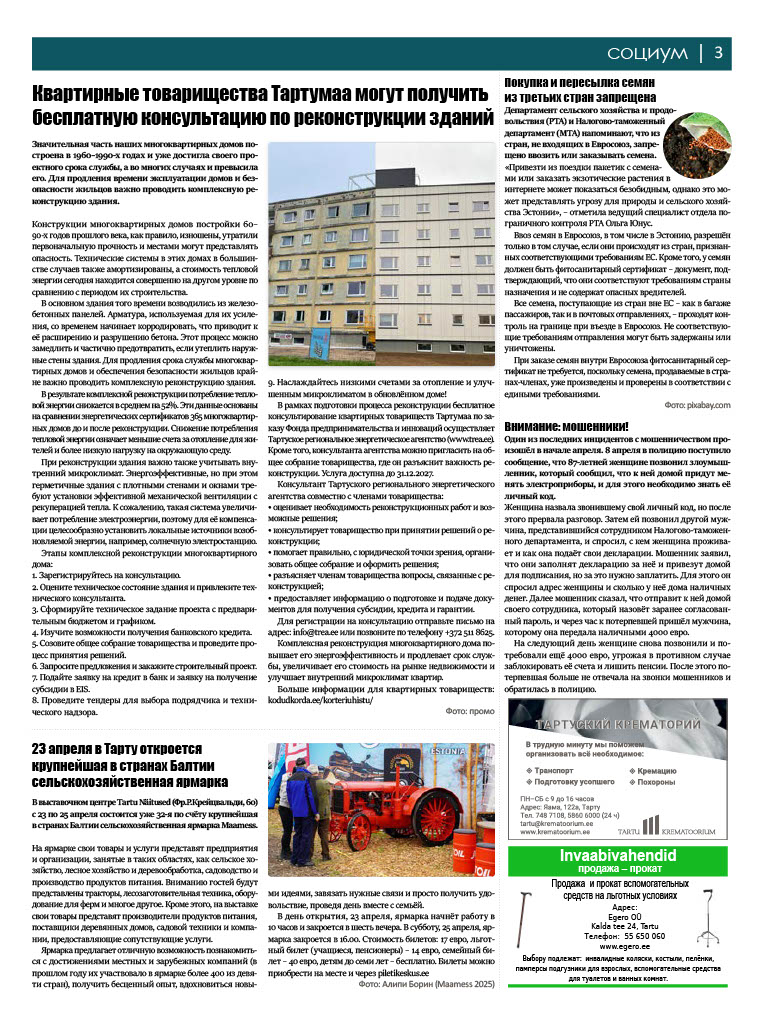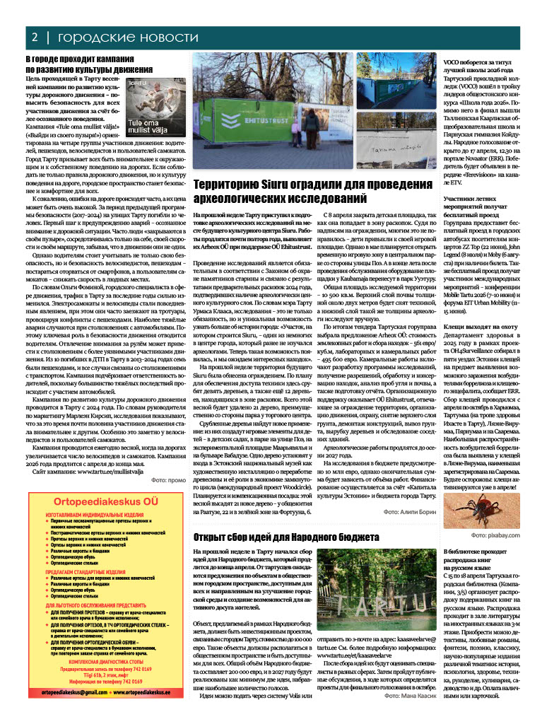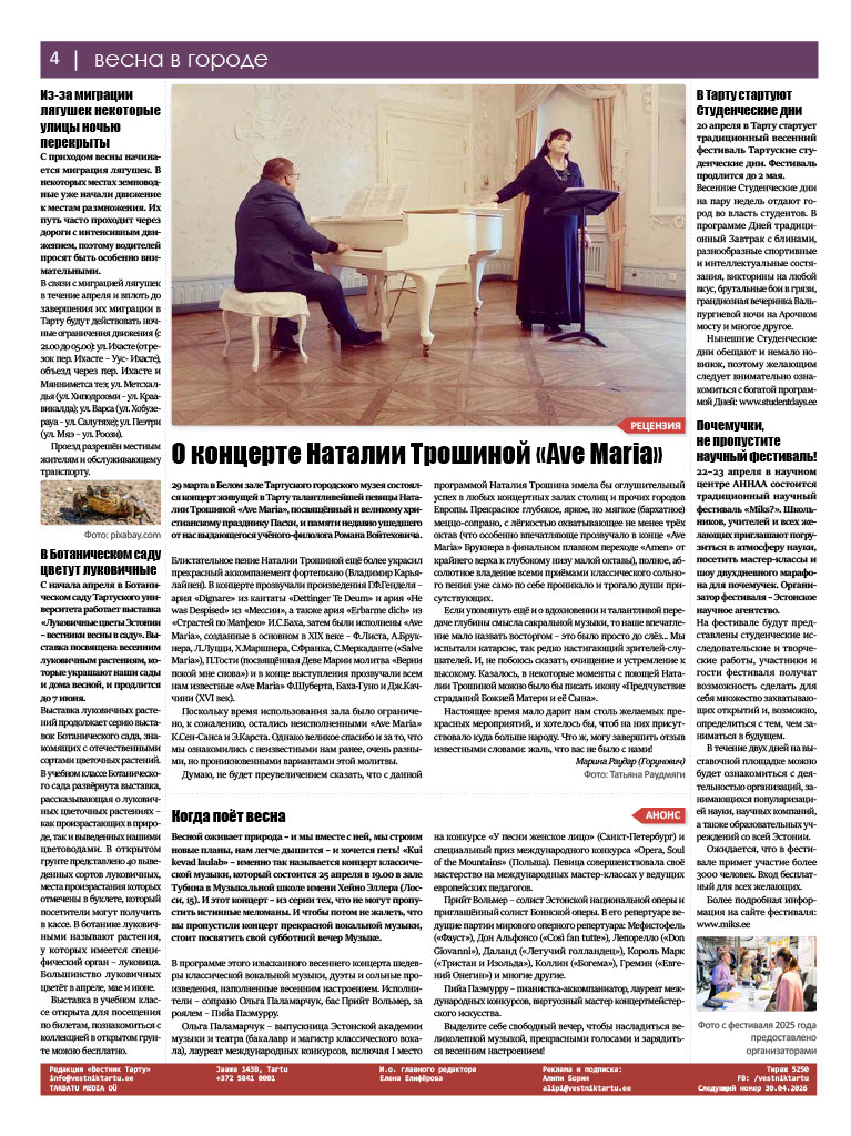 Анонс свежего номера газеты «Вестник Тарту» (№229, 16.04.2026)