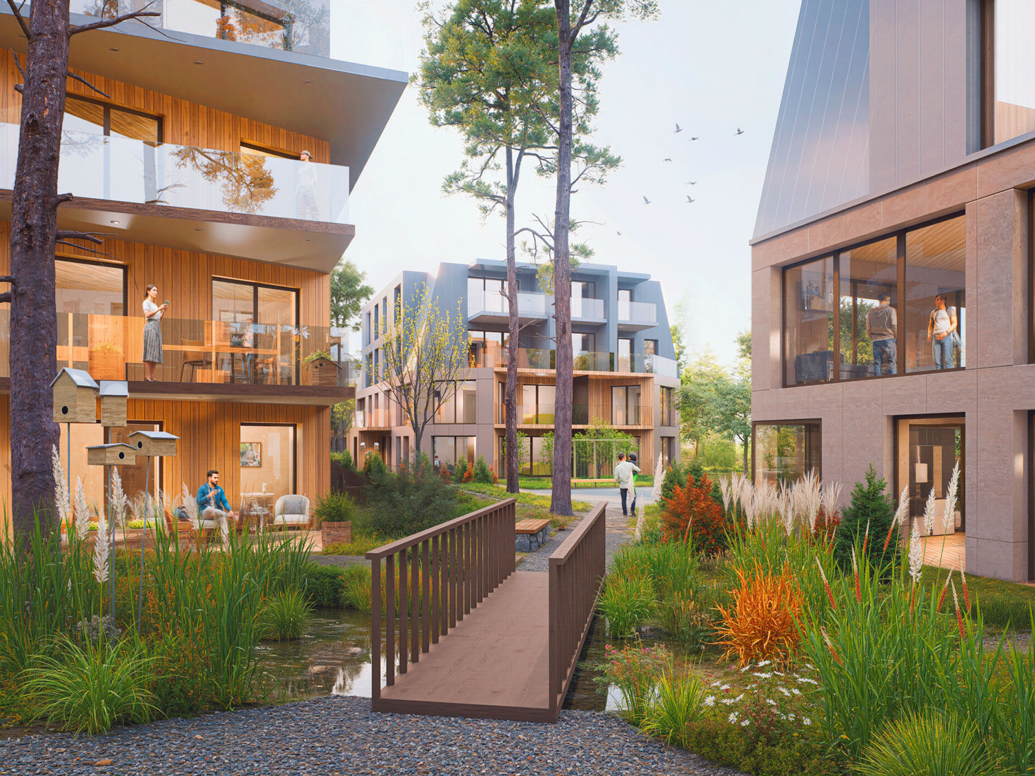 Свои проекты также представили Pluss Arhitektid и шведское архитектурное бюро Wingårdhs. Из-за высокого уровня работ отбор проходил в несколько этапов, в ходе которых искались решения различных концептуальных задач. В основу был положен проект бизнес-парка, разработанный Wingårdhs в 2022 году, человеко- и природоориентированное решение которого стало базой для нынешнего победившего проекта.