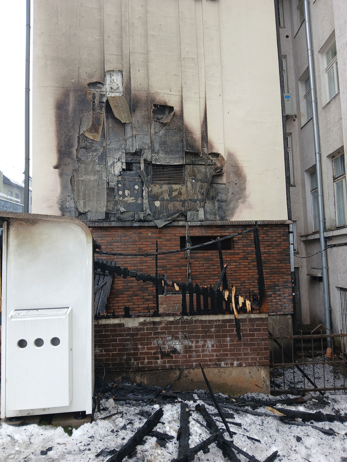 В примыкающем к зданию на улице Ülikooli мусорном домике загорелся контейнер с бумагой. По словам нескольких очевидцев, огонь за несколько минут разгорелся до сильного пламени и перекинулся на стену соседнего здания.
