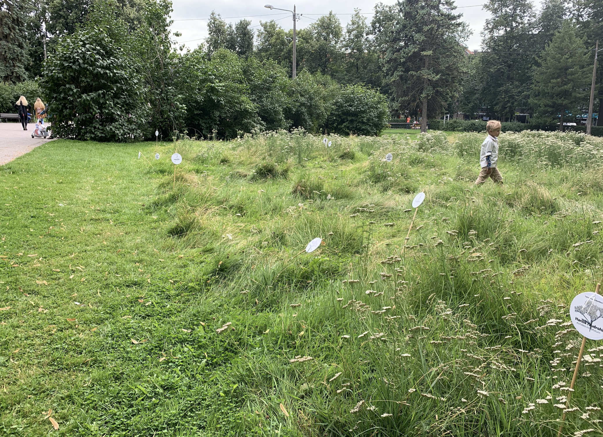 «На первом этапе нашего проекта мы ставили своей задачей увеличение биоразнообразия за счёт более редких покосов, – поясняет один из кураторов проекта Мерле Карро-Калберг. – Затем летом мы высадили вдоль проспекта Вабадузе целое готовое сообщество луговых растений, снабдив их табличками с названиями. Теперь там растут тысячелистник, дикая морковь, василёк луговой, клевер, синяк обыкновенный. Сейчас мы на третьем этапе проекта: создаём городской луг на месте обычного газона».