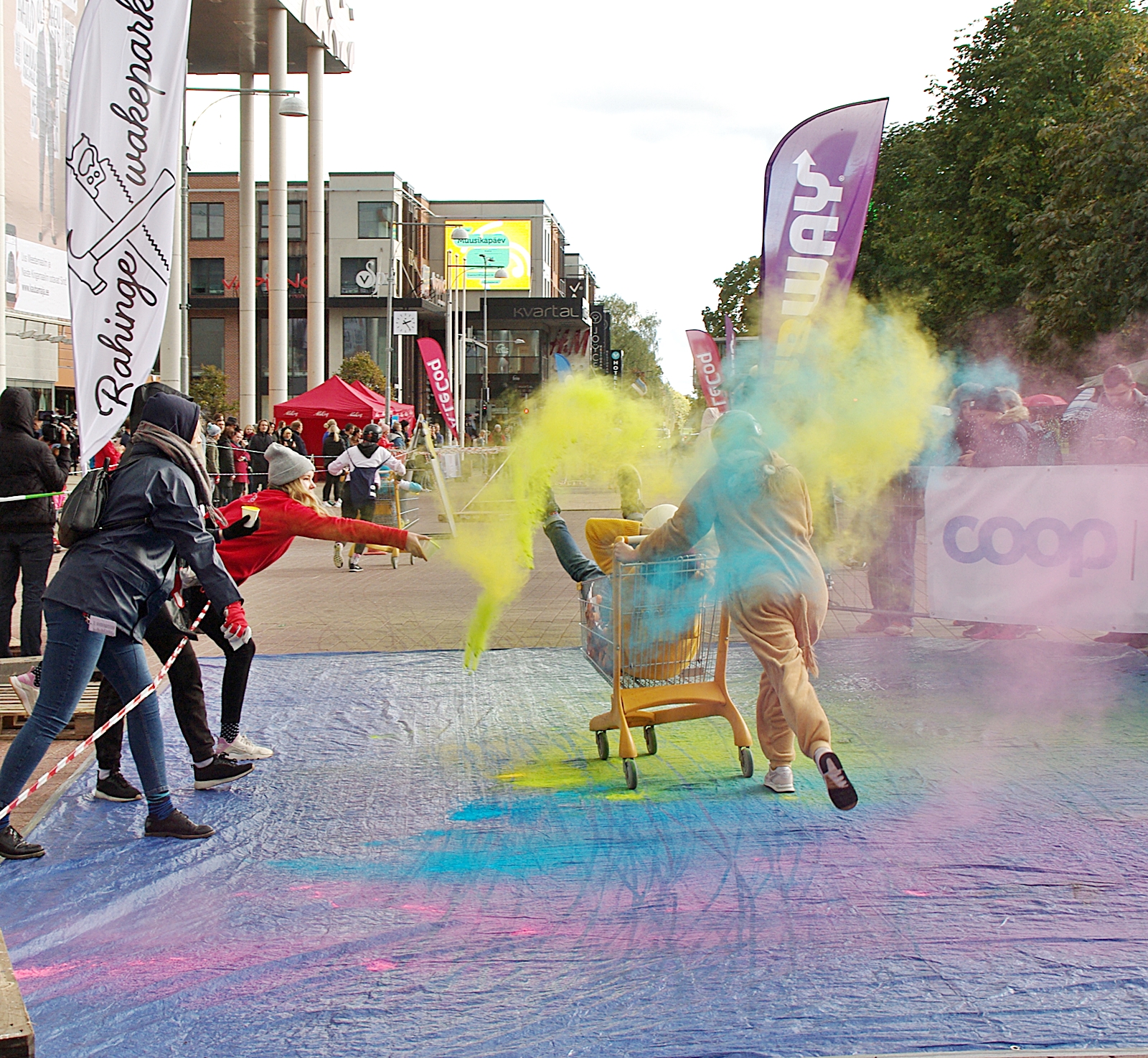 Одним из самых весёлых мероприятий стал Käruralli – Гонки на тележках. Мы решили подробнее отразить это событие в фотогалерее. Команды по 2 человека, обязательно в шлемах, должны на скорость пройти полосу препятствий, проявив свою силу духа.